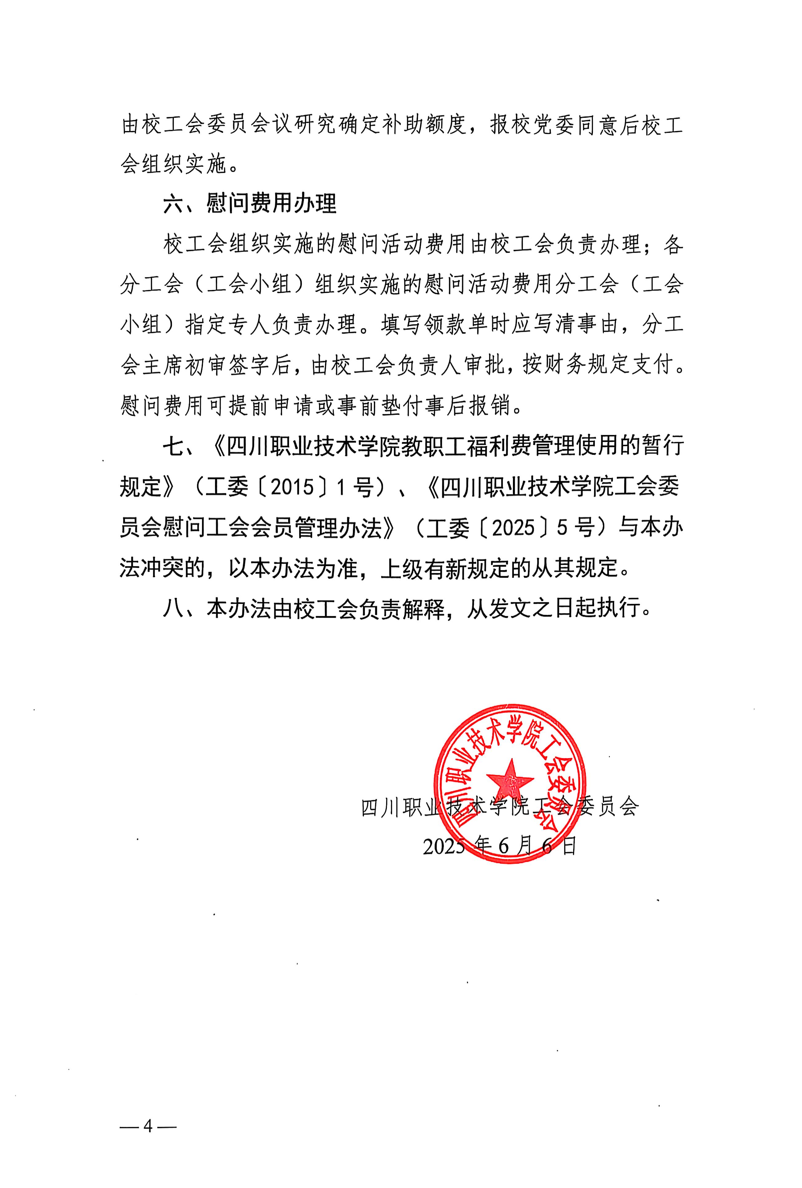 工委【2025】6号 四川职业技术学院工会委员会慰问工会会员管理办法