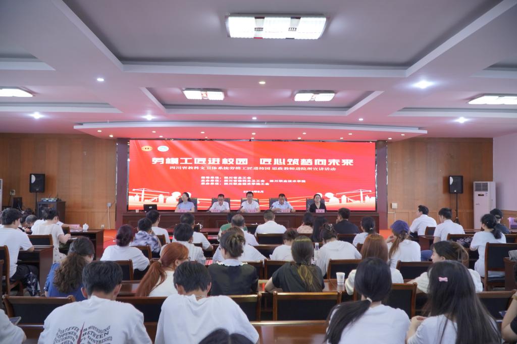 6月20日下午,四川省教科文卫体系统 “劳模工匠进校园,匠心筑梦向未来”宣讲报告会在我校河东校区行政楼410会议室举行。省教科文卫工会副主席黄先明,学校党委副书记胥长寿,学校副校长、工会主席刘光彬出席报告会,全校120余名师生代表聆听了报告。报告会由副校长、工会主席刘光彬主持。